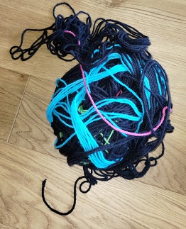 Things don’t always line up. After making a hat, I had a couple of false starts on the scarf. The yarn is not forgiving and does not want to unravel nicely. It snags and rips….